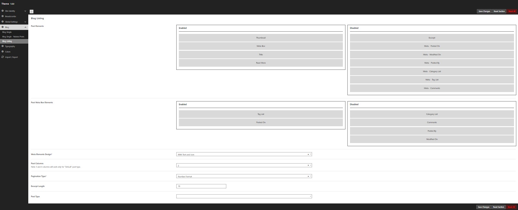 In Post Elements & Meta Box Elements you can find more blog listing section with Enable & Disable option.