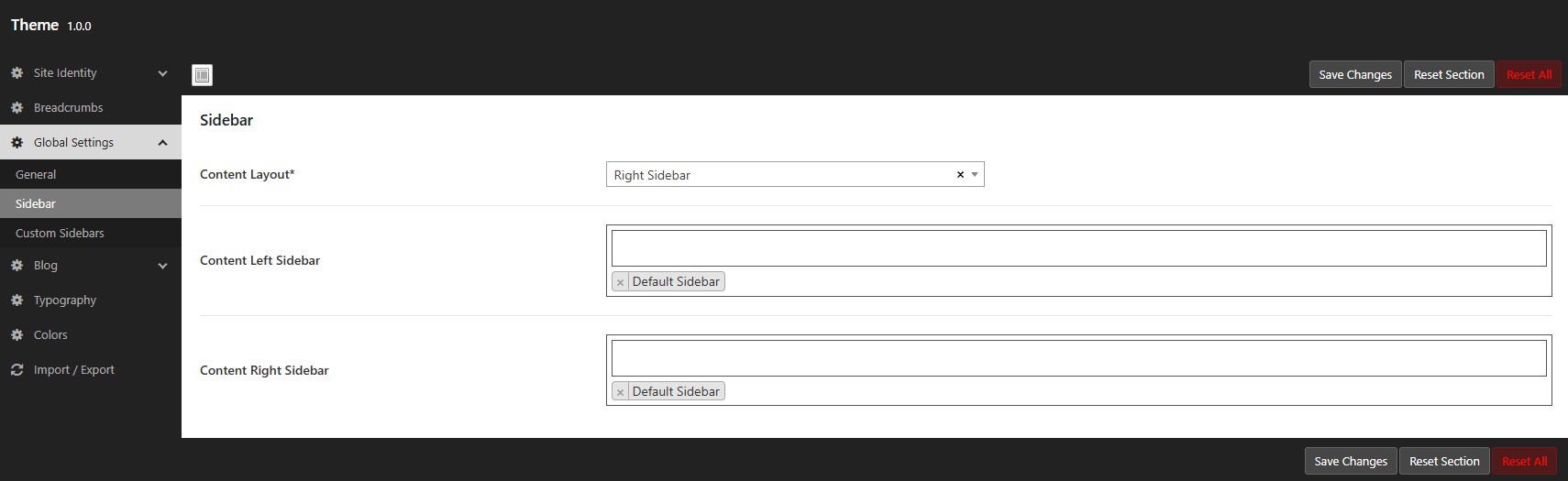 Global Settings – Sidebar