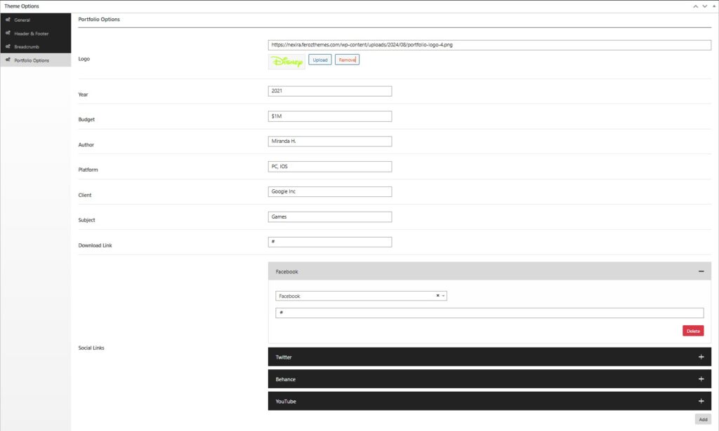 If you wish to set unique header, sticky header or footer for your portfolio, you can do it using this option.